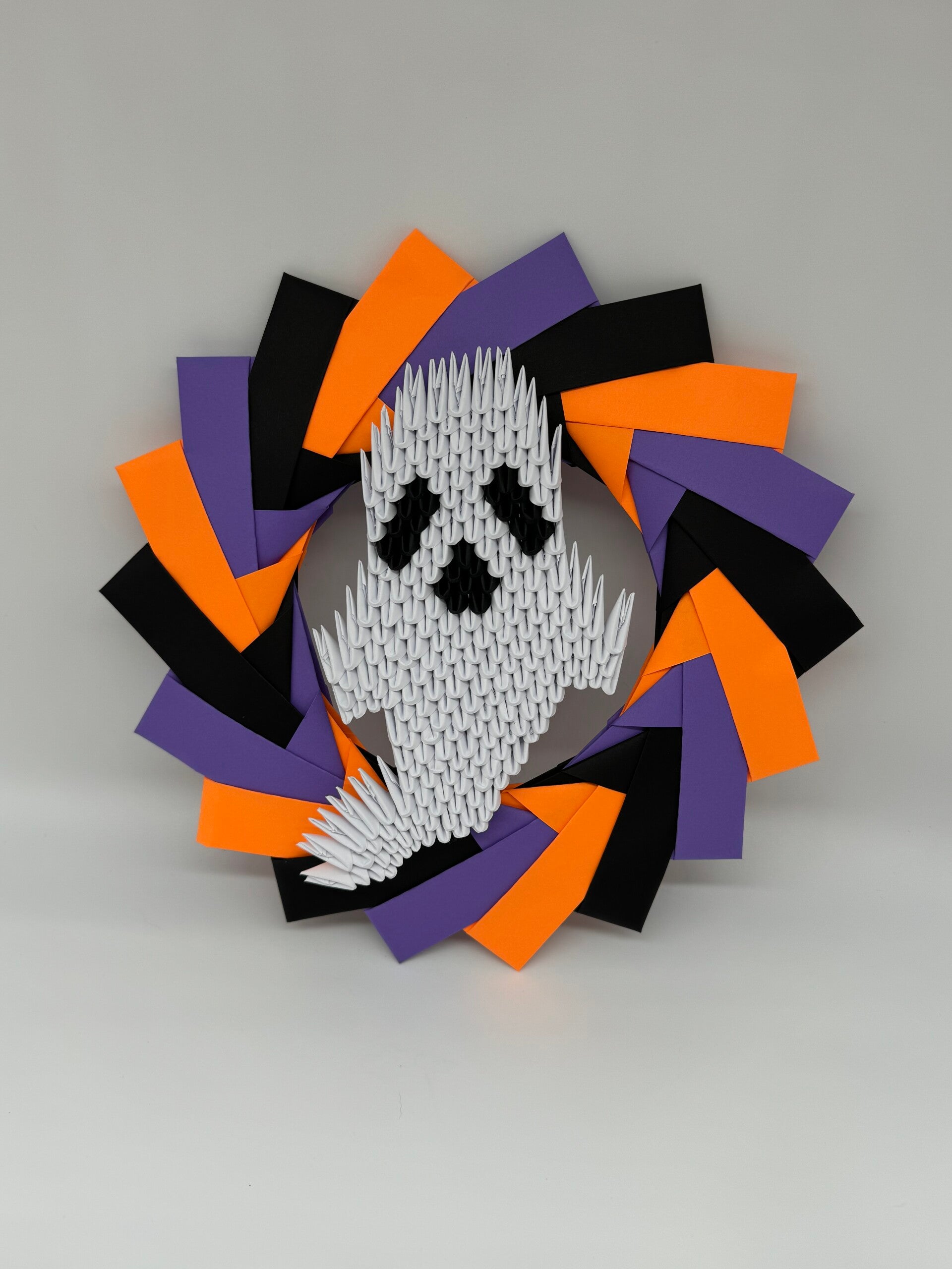 Ghost and pumpkin tea lights 6” x 3.5 “ ($25 plus s&h) Bat wreath 12” x 12” ($25 plus s&h)