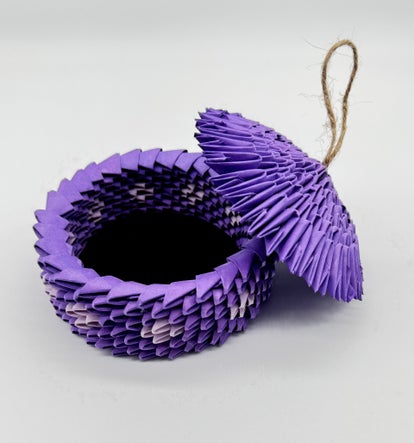 looking for an unusual handmade gift, this trinket box is perfect. featuring a diamond pattern, it can be custom made to fit the favorite color or person you are giving it to. It has a wooden base and is lined with felt. The base is also covered in felt. It is approx 4" round. Shipping and handling is included in the price.